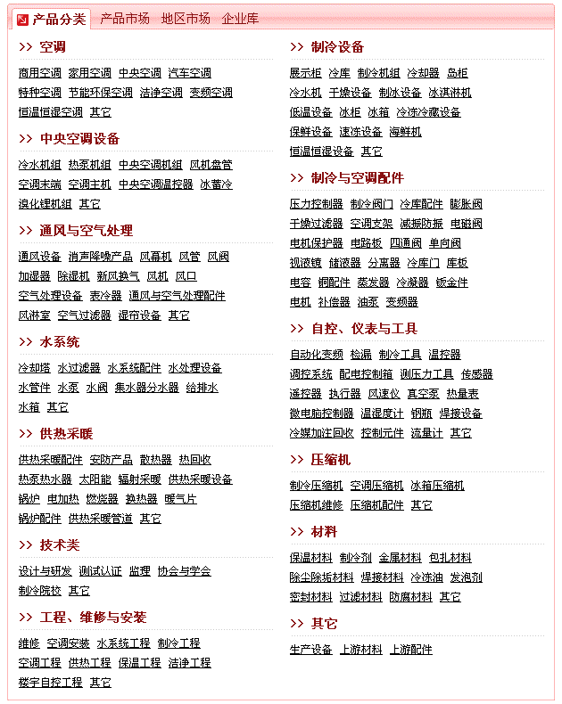 空調制冷大市場四大優勢之分類別或分地區查找產品